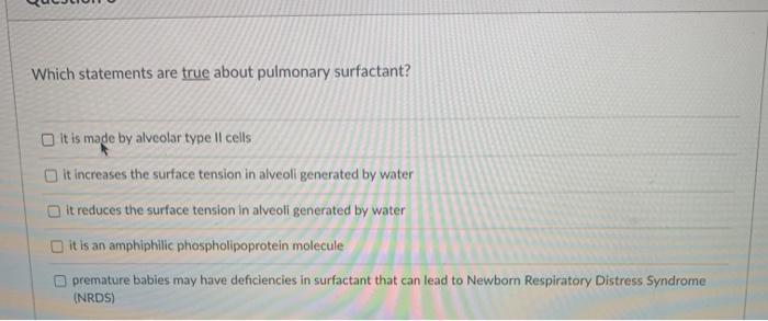 Solved Which Statements Are True About Pulmonary Surfactant Chegg Com